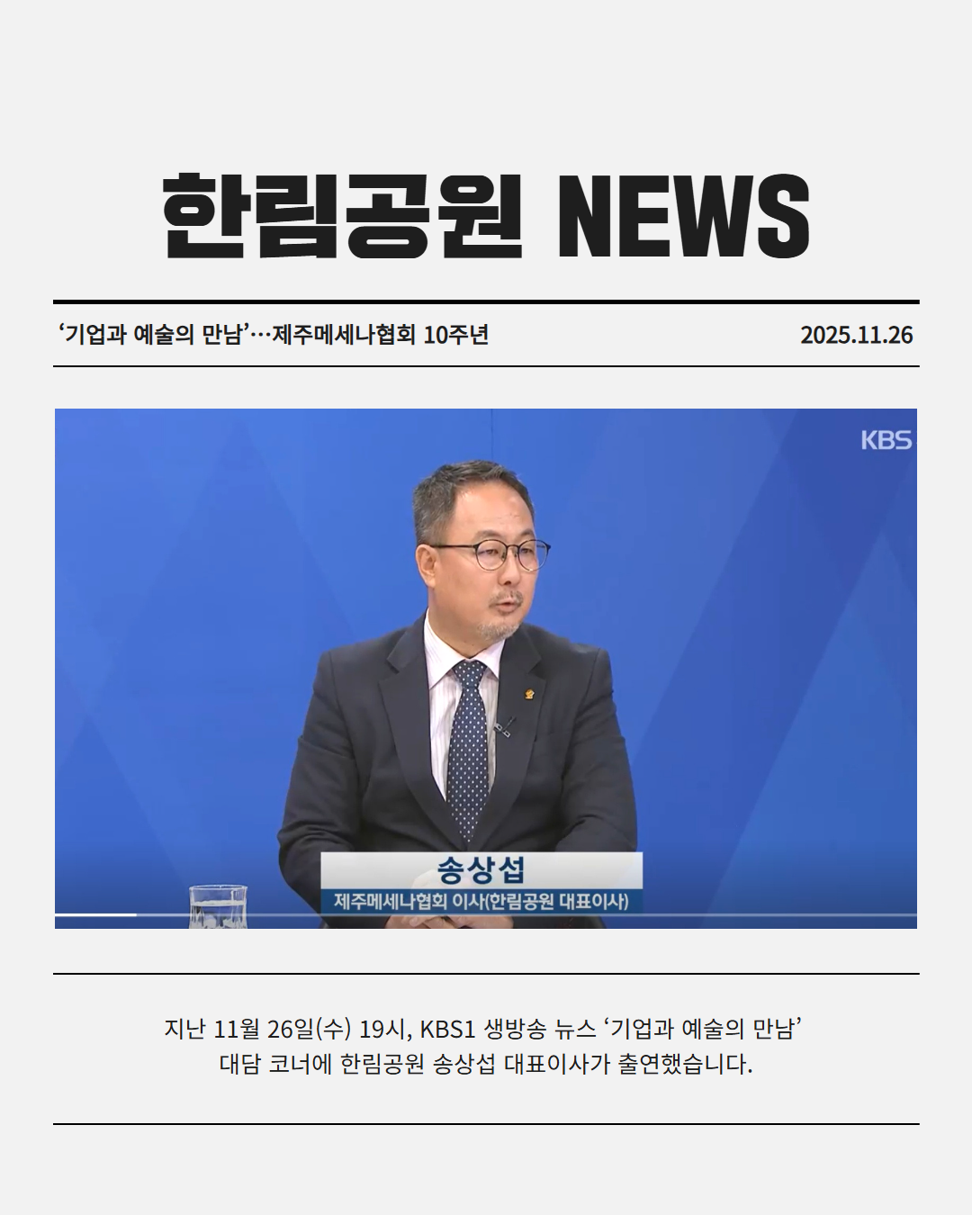 한림공원 송상섭 대표이사님이 출연했습니다.